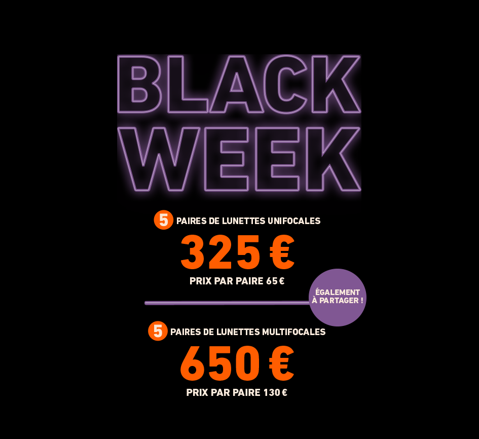 Une belle paire de lunettes ne coûte pas forcément une fortune ! Chez nous, vous pouvez maintenant obtenir non pas une, ni deux, mais cinq paires de lunettes unifocales pour 325 € ou 5 paires de lunettes multifocales pour 650 € – soit seulement 65 € la paire de lunettes unifocales ou 130 € la paire de lunettes multifocales ! Et excellente nouvelle : vous pouvez partager notre HIGH 5 DEAL avec un maximum de 4 autres personnes !*