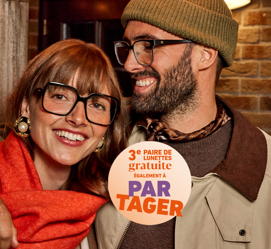 En compagnie de la personne de votre choix, venez découvrir notre vaste sélection de montures de lunettes, et composez conjointement un ensemble de 3 paires de lunettes à partager.